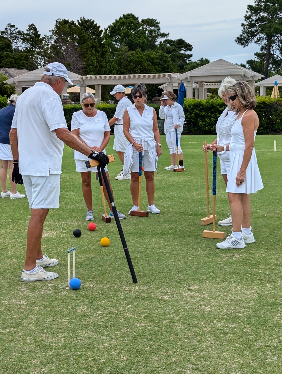 Flat soled shoes should be worn to prevent damage to the lawns. While traditional "whites" are required to be worn at the Reserve court and in tournament play, casual attire is perfectly acceptable on the Players court.